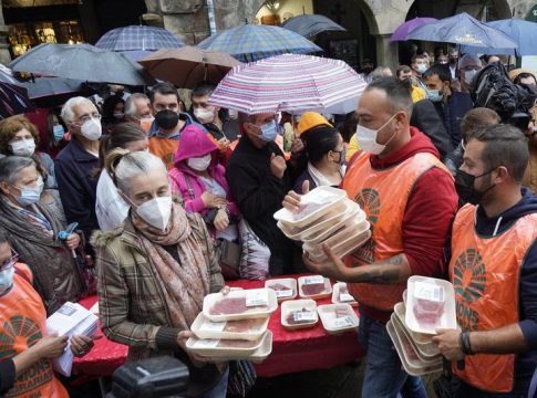 En una abarrotada Praza do Toural dada la presencia de decenas de ganaderos y de personas que acudían a recoger alguna de las bandejas con carne que se repartían, los ganaderos han buscado la complicidad de los consumidores ante esta problemática. Además, han hecho un llamamiento a las administraciones para que actúen con el objetivo de que el precio que reciben les permita obtener un margen de beneficio para vivir dignamente de su trabajo.
