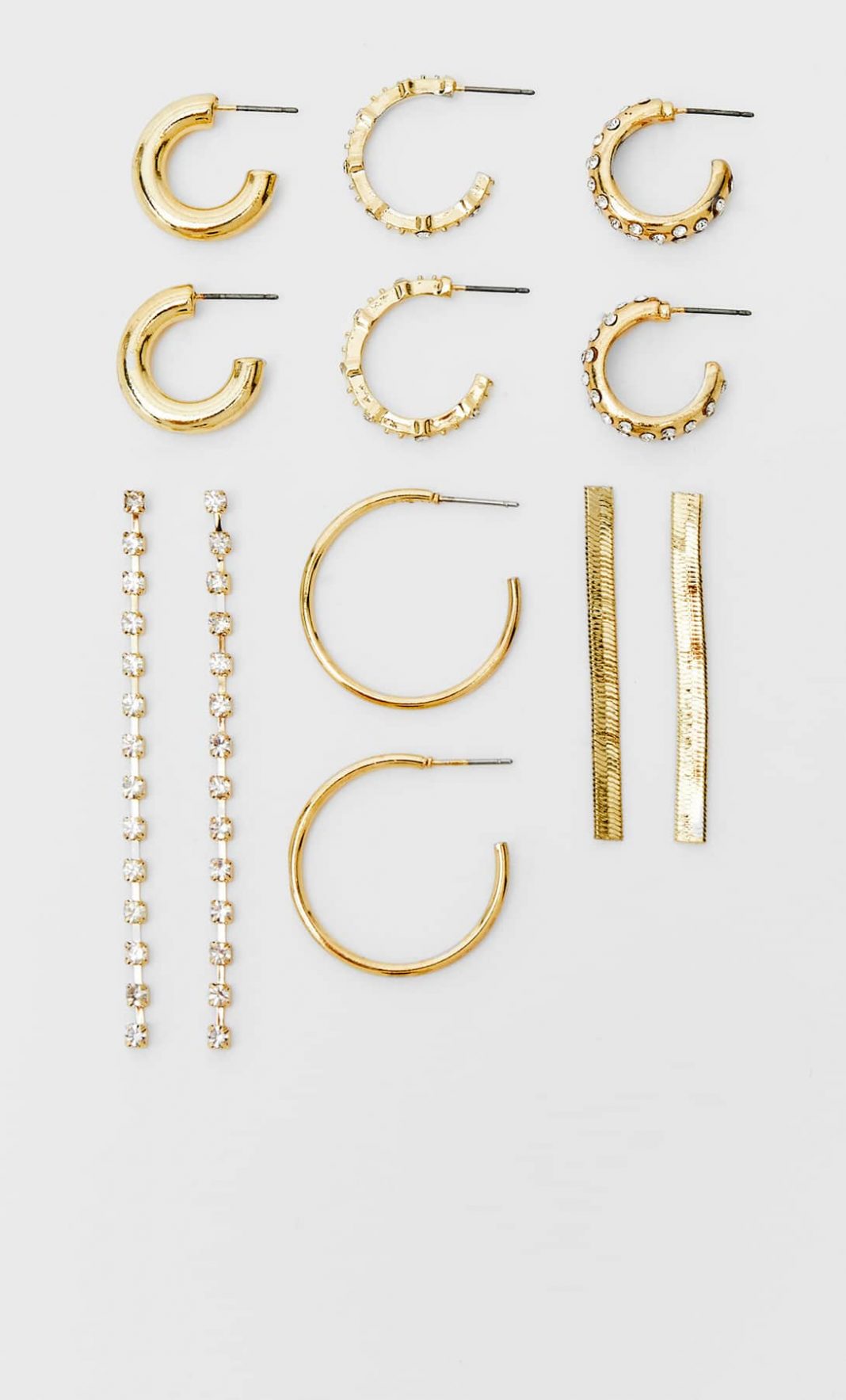 Toda una combinación de pendientes es este set 6 aros y pendientes largos. Visita las tiendas Stradivarius y llévatelos, para infinidad de ocasiones, podrás combinarlo como te sientas más elegante o dependiendo de lo formal o casual que quieras lucir.