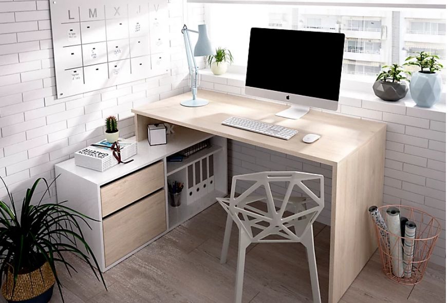 Este escritorio es una de las mejores opciones posibles para todos aquellos que no tienen demasiado espacio, pero que necesitan una mesa amplia. Y todo porque se compone de dos módulos que se colocan en forma de L. Además, el inferior tiene dos cajones para que puedas almacenar en su interior todo lo que necesites. Además sale muy bien de precio. Puedes encontrarle en Leroy Merlin por tan solo 115 euros.
