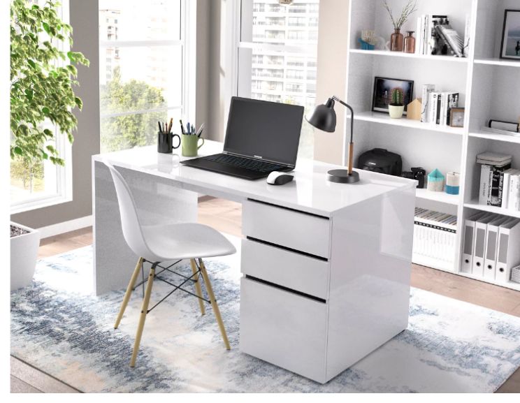Este escritorio es la opción ideal para todos los que buscan una mesa que tenga una amplia capacidad de almacenaje. Y todo a que tiene incorporado tres cajones muy amplios en los que podrás guardar todo aquello que necesites tener a mano. Su precio es de 119 euros.