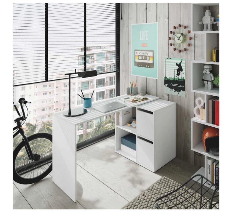Si buscas una mesa que sea incluso más compacta que la anterior, pero que siga teniendo dos módulos que tengan forma de L, lo mismo este escritorio de Leroy Merlin te interesa. Porque es ligeramente más pequeña. Además, puedes colocar el módulo inferior en la parte izquierda o en la derecha, en función de lo que más te convenga. Está fabricado a base de madera que se ha extraído de manera sostenible y atención, porque estos días la puedes encontrar de oferta a un precio de 69 euros.