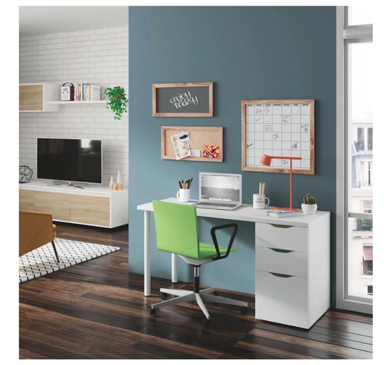 Al tener tanta variedad de producto, en Leroy Merlin además de encontrar escritorios de diseño más moderno también es posible encontrar algunos de corte más clásico. Como por ejemplo este de la imagen. En un extremo las patas y en el otro los cajones. Su precio es de 89’99 euros.