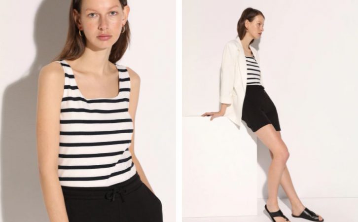 Terminamos con otro modelo básico de tirantes y cuello redondo que se vende en El Corte Inglés a 2,39 euros y de la marca Easy Wear. Como el que vimos antes de cuello redondo con nudo, es un modelo de lo más marinero y veraniego. Una vez más tienes muchas opciones de color: verde agua, lila, blanco, negro, azul claro y marino y beige. Está hecha en este caso de 100% viscosa y la puedes o puedes comprarlas en este enlace.
