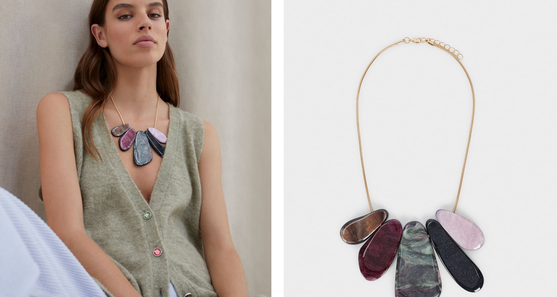 Por último, también tienes a tu alcance este collar corto con colgantes. Una de esas piezas inspirada en la naturaleza, con un precio de 7,99€.