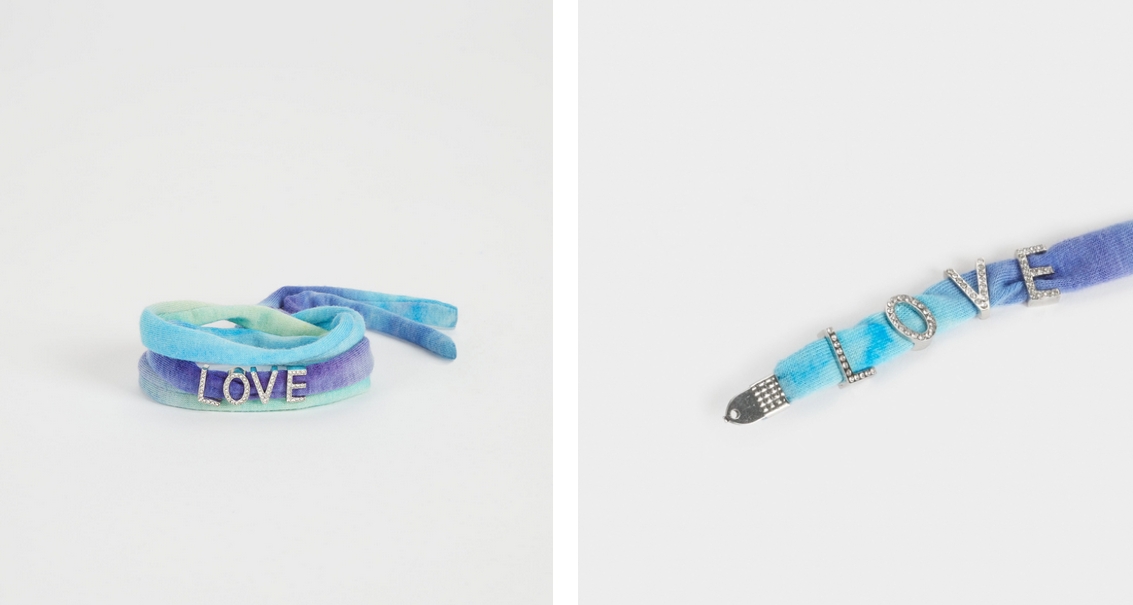 Un diseño confeccionado en un 90% acero inoxidable y un 10% de vidrio incrustado para dar más brillo a las letras. Y con una correa de tela multicolor.