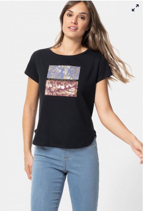 Si buscas una camiseta elegante y que sea ideal para que puedas llevar puesta en el día a día, estamos seguros de que esta opción te va a encajar en lo que buscas. Porque su color negro hace que sea una prenda que aporte estilo a tu look y su estampado con una fotografía le da un toque desenfadado. Su precio es de tan solo 5’99 euros.