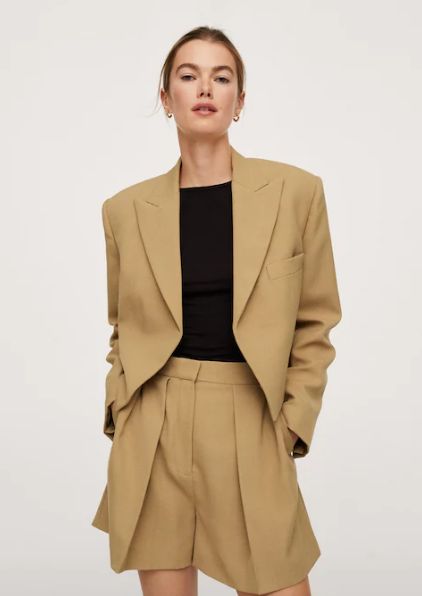 Quieres una americana que puedas lucir todos los días, sin desmejorar tu elegancia, busca en una de las tiendas Mango la americana crop ribete, cuando la tengas en tus manos y decidas probártela, veras que encaja perfectamente en tu cuerpo.