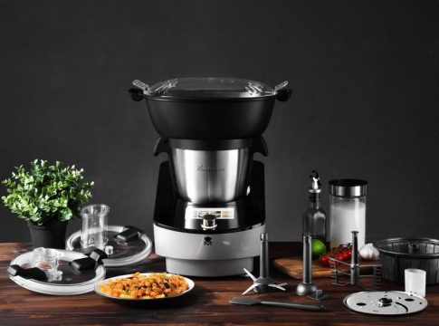 Masterpro apuesta por la innovación con un robot de cocina que está equipado con conexión Wifi y con una pantalla táctil de 5 pulgadas en color con indicación de recetas paso a paso. Tiene una potencia de cocción de 1.000 W, incluye un vaso de acero inoxidable extragrande con una capacidad de 3,5 litros y una báscula integrada para pesar los alimentos.