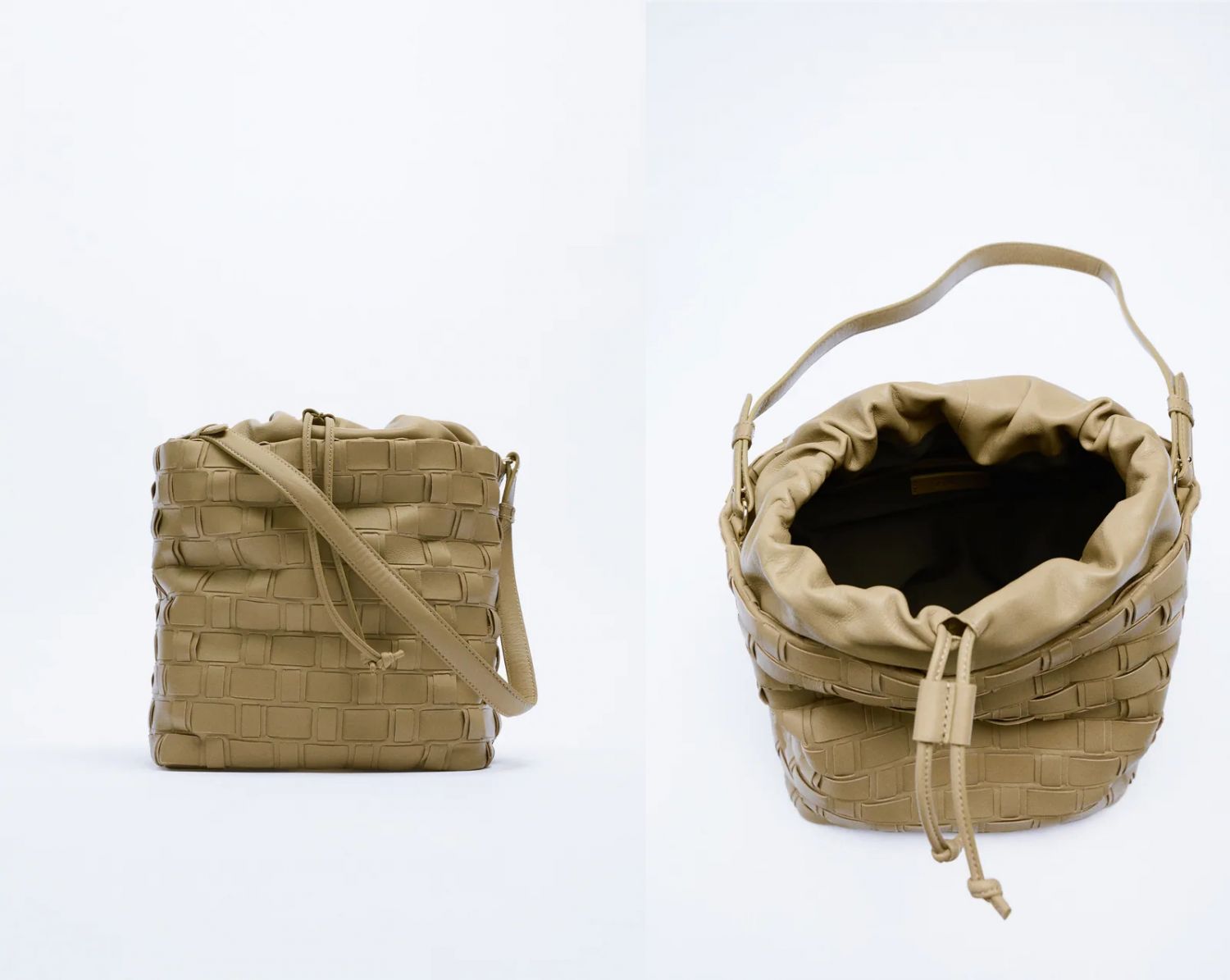 La siguiente opción es este bolso estilo shopper de piel trenzada. Disponible en Zara por 89,95€ y en dos colores: gris topo y marrón chocolate. Sin duda uno de los bolsos más exclusivos de la firma española.