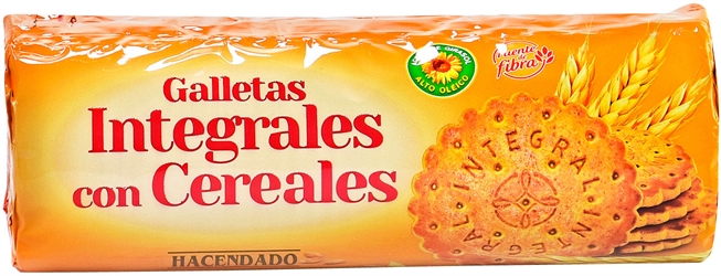 Y no podían faltar los integrales más dulces, como las galletas de Mercadona. Puedes encontrar varias de estas galletas, unas son las de su marca, Hacendado.