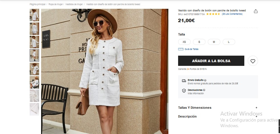En esta última opción, tenemos este hermoso vestido color blanco y con un estilo elegante perfecto para que sea usado en otoño o invierno. Cuenta con un estampado liso y de es corto, siendo ajustado. Además, tiene unos detalles de bolsillos, cremallera y botón delantero para darle un toque único. Entonces, si lo deseas solo debes entrar a Shein a un precio accesible de 21,00€.
