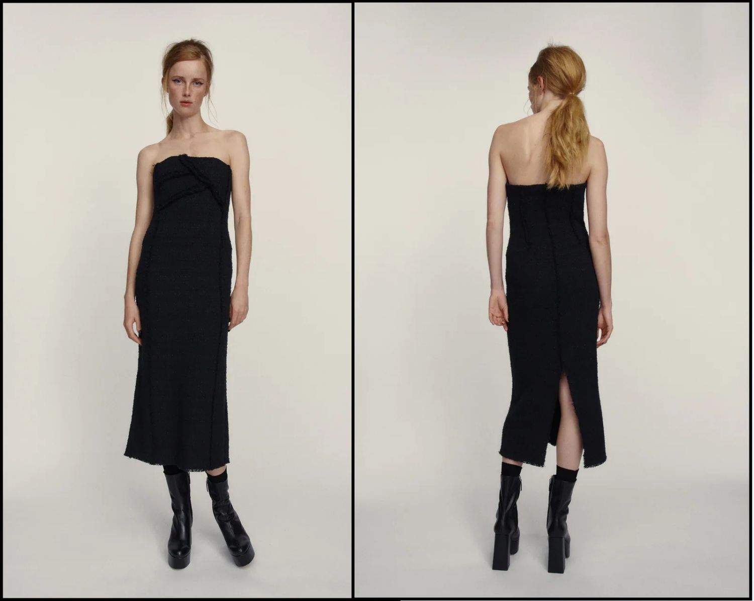 Este vestido de estructura Limited Edition de Zara también es otro de los artículos imprescindibles para esta temporada. Su precio es de 69,95€, para cualquiera de sus tallas. Solo se encuentra disponible en color negro.