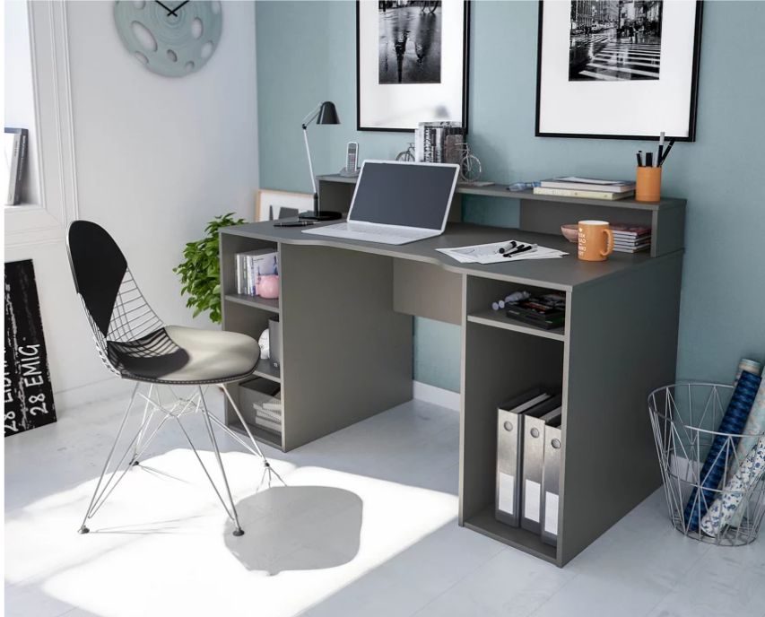 Estamos seguros de que este escritorio va a gustar mucho a todos aquellos que tengan que pasar largas horas de trabajo o de estudio en sus casas. Pero sobre todo a aquellos a los que les guste jugar a videojuegos. Porque esta mesa está especialmente diseñada para la práctica de esta actividad. Es de color gris tipo antracita y su precio es de tan solo 139 euros.