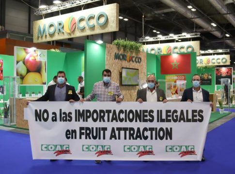 COAG ha denunciado las importaciones ilegales de frutas y hortalizas frente a stands de Marruecos en un acto de protesta celebrado en la jornada inaugural de la feria Fruit Attraction y protagonizado por una delegación de agricultores de las principales zonas productoras de frutas y hortalizas españolas.