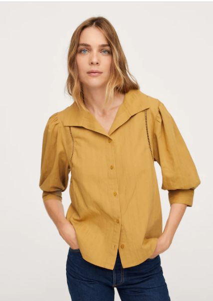 Una blusa que siempre que la tengas puesta tendrás ese toque característico de toda mujer elegante con glamur. Como parte de la colección, casual con su toque de elegancia. En un vistoso y llamativo color mostaza y en promoción Mango por 25.99 euros.