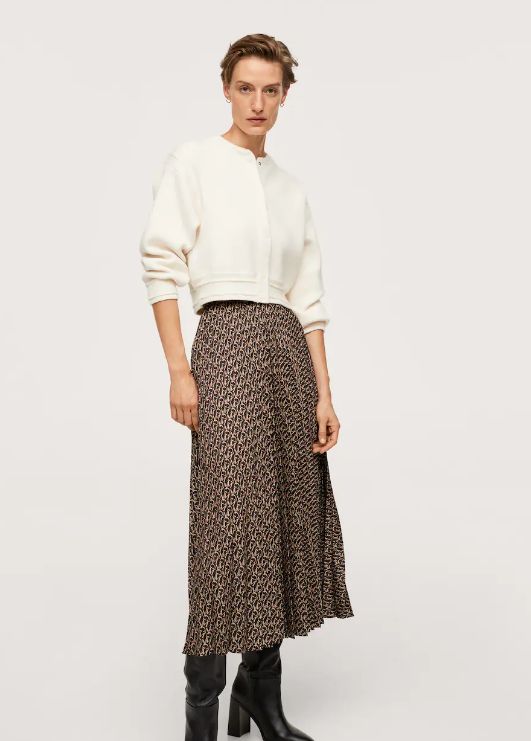 Si buscas una falda con la que romperlo durante este otoño cada vez que te la pongas te recomendamos que pases por cualquiera de las tiendas que Mango tiene repartidas a lo largo del país y que eches un vistazo a esta. Destaca por tener el logo de la marca estampado, pero también por tener un tejido ligero y un diseño plisado. Su precio es de tan solo 39’99 euros.