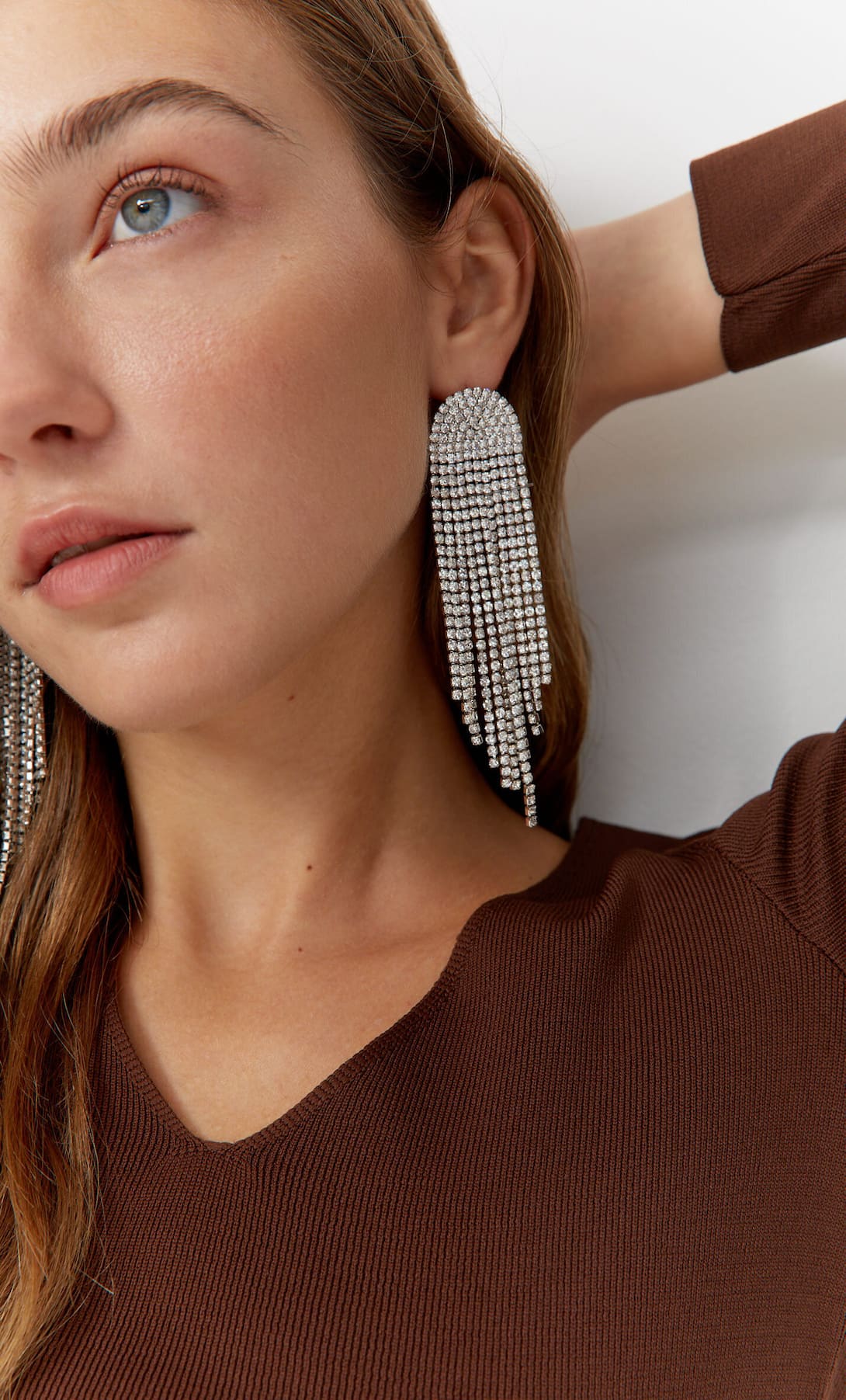Unos pendientes largos elaborados a base de pequeños cristales que producen un brillo único y además hasta parecen de plata. ¿Quieres más razones para comprarlos? Pues que sepas que cuestan solo 7,99 euros.