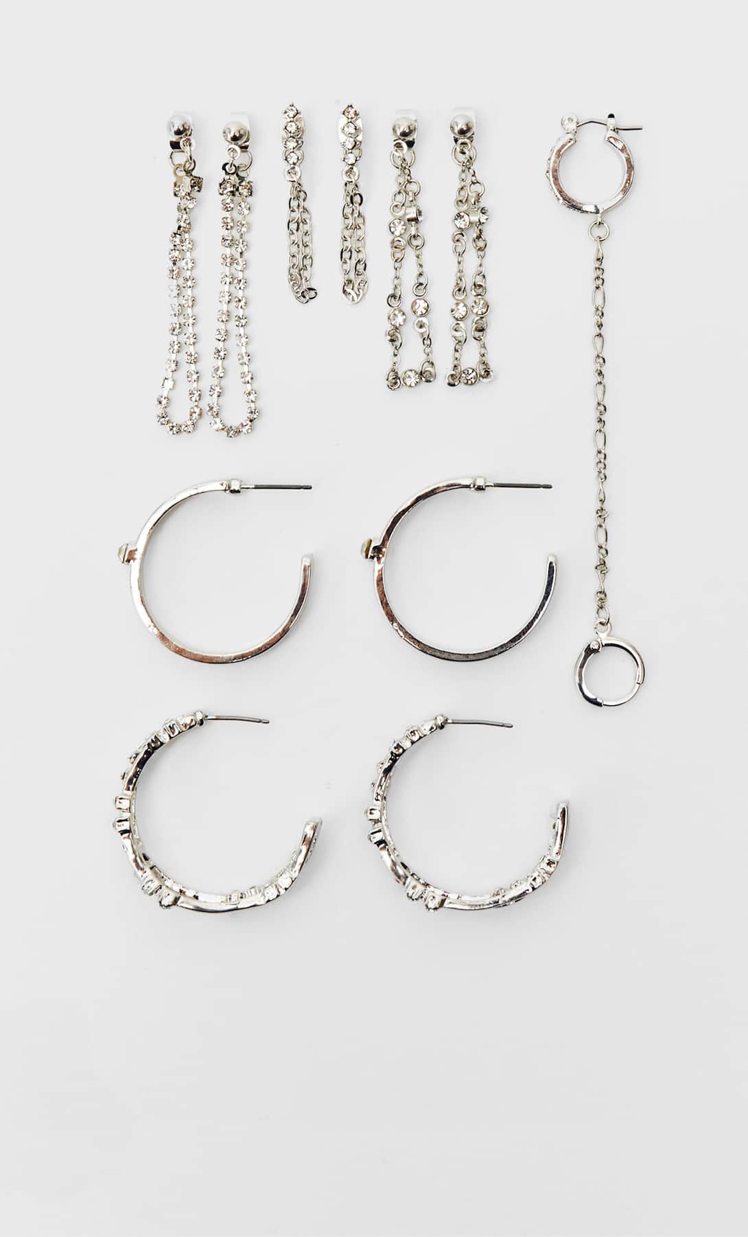Incluye aros de diferentes tamaños y modelos y también pendientes de cadena en diferentes versiones. Seis pares de pendientes con los que puedes crear tantas combinaciones que nunca te aburrirás de ellos.
