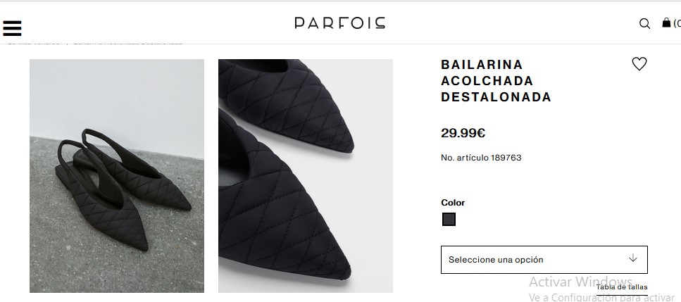 Son unas grandes bailarinas que están completamente acolchadas, por lo que son completamente cómodas de usar en cualquier ocasión. En la parte interior está fabricada de 60% de poliéster y un 40% de poliuretano. Inclusive, en la plantilla es 100% poliuretano, la suela es fabricada en 100% de caucho y el cuerpo es 100% de poliéster. Si la desean comprar solo deben entrar a Parfois por un precio accesible de 29.99€.
