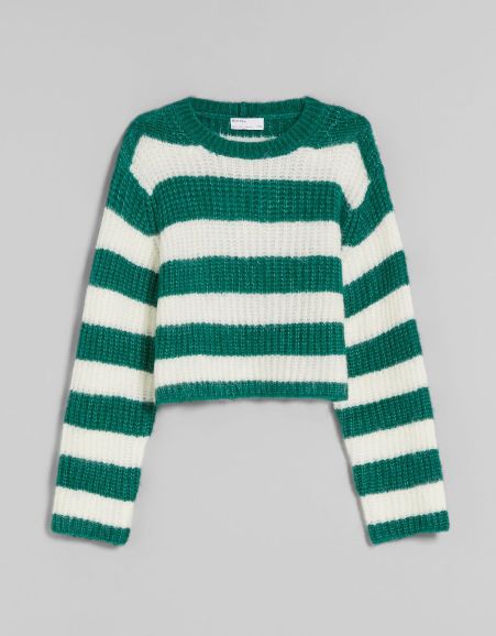 Si te gustan las prendas que tienen estampados de rayas horizontales deberías de pasarte por cualquiera de las tiendas que Bershka tiene repartidas a lo largo del país y echar un vistazo a esta prenda. Se trata de un jersey de rayas verdes y blancas con el que, además de resguardarte de las bajas temperaturas podrás lucir estilazo durante este otoño. Su precio es de solo 19’99 euros.