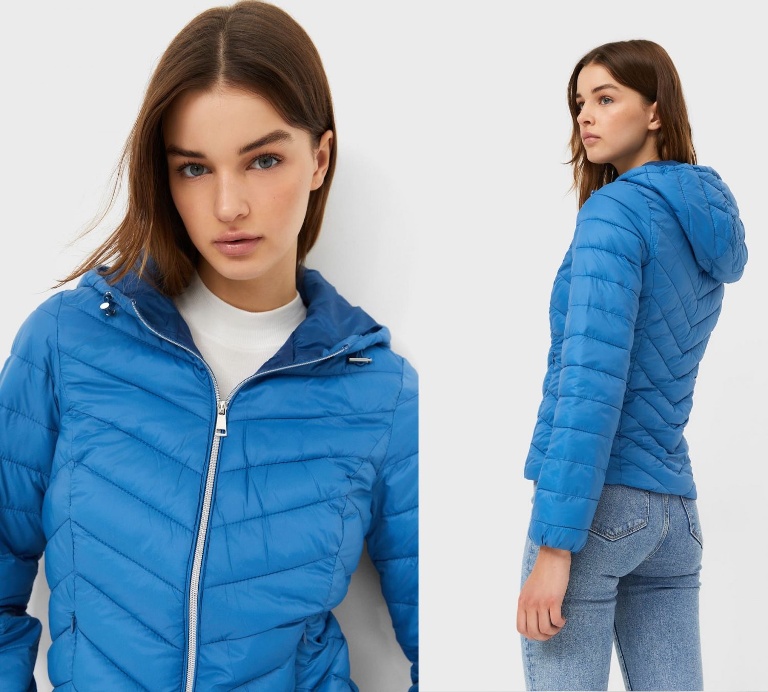 También tienes esta cazadora acolchada con capucha en Stradivarius. Su precio es de 19,99€, con varias tallas y cuatro colores diferentes: azul, verde, negro, y blanco. Todos fabricados con exterior en 100% nailon y forro interior en 100% poliéster.
