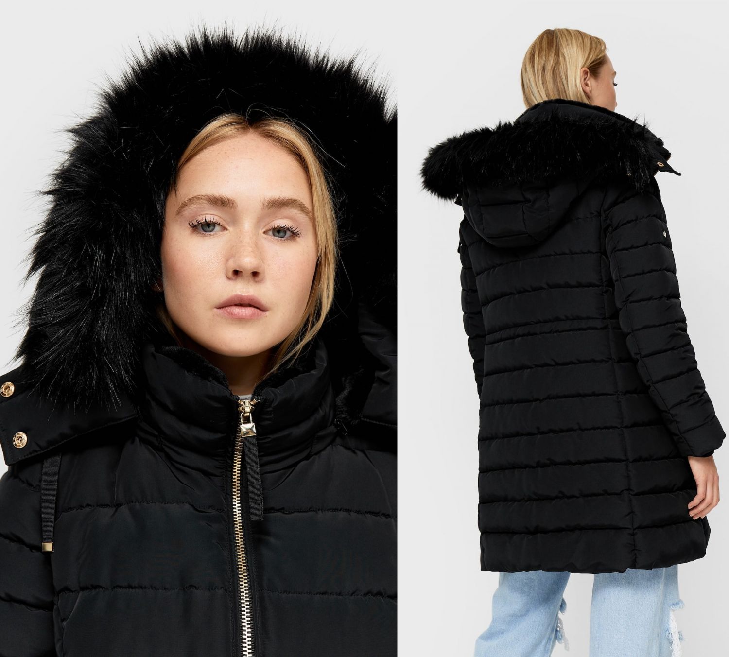 En octavo lugar está esta preciosidad, un abrigo acolchado entallado con capucha de Stradivarius. Disponible en dos colores, el negro de la imagen y el gris medio. También hay varias tallas, todos por 69,99€.