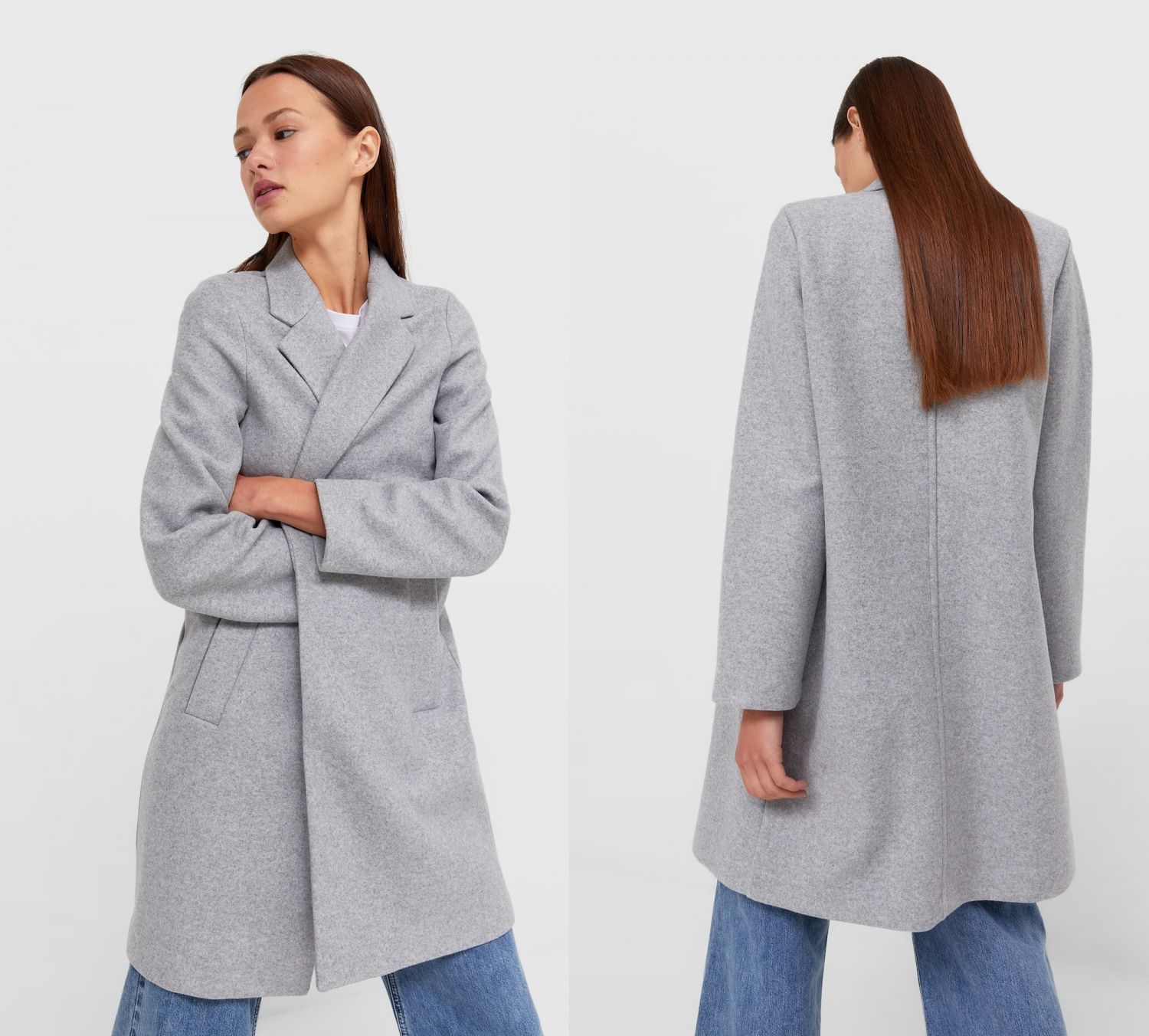 Si te gustan los abrigos elegantes, tienes este de punto perchado de Stradivarius. Solo cuesta 29,99€, en sus diversas tallas y en los cinco colores: gris mezcla, gris medio, crudo, azul y negro.
