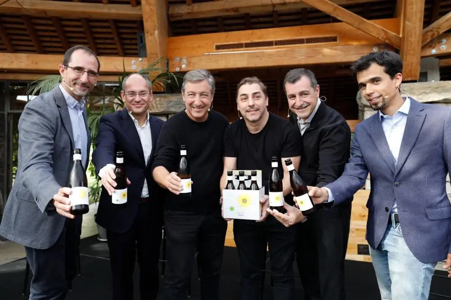 Han sido dos años de trabajo y complicidad en los que los maestros cerveceros de Damm han trabajado codo con codo con los Roca, para erigir una cerveza con un punto ácido que une dos mundos, el del de la malta de cebada y el de la uva. Concretamente, el de la garnacha blanca, “que aporta luminosidad, frescura, un paisaje”, explica Josep Roca. Algunas cervezas estilo sour tradicionales se elaboran con fruta −normalmente frutos rojos− para equilibrar el punto agrio, pero Damm y los hermanos Roca han optado por utilizar uva de la comarca de la Terra Alta, dándole así “el toque Mediterráneo”. “La uva permite aportar complejidad, verticalidad y frescura a Duet, y además una textura sedosa”, completa el sumiller de El Celler.