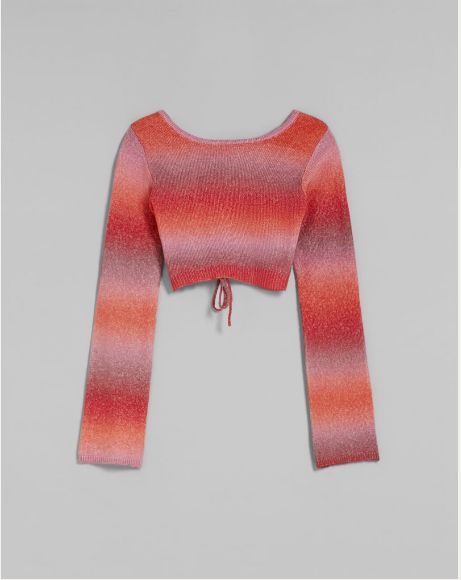 Ahora que ha empezado el otoño es un buen momento para hacerse con un jersey nuevo. Nosotros te proponemos que compres este que acaban de poner a la venta en Bershka. Destaca, además de por tener un diseño corto que contrasta con la manga larga, un conjunto de colores rojos que le darán a tu look un toque muy divertido. Además sale muy bien de precio, ya que tan solo cuesta 19’99 euros.