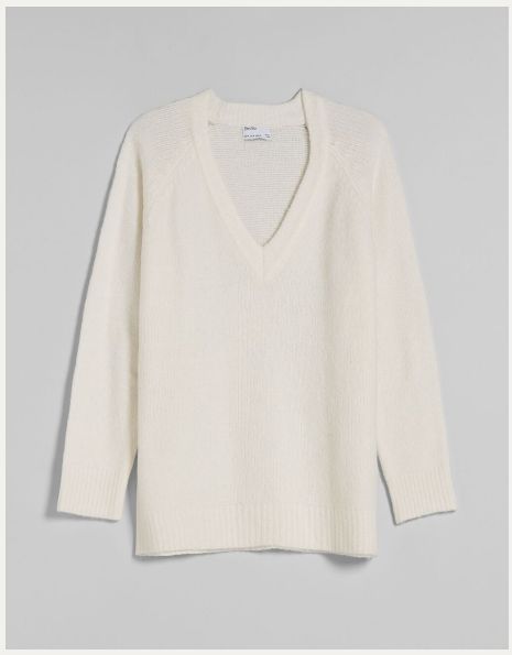 Si el jersey que ta acabamos de mostrar, aun habiéndote parecido muy bonito, no encaja con lo que buscas, no te preocupes. Porque gracias a la profundidad de catálogo de Bershka podrás encontrar cualquier tipo de prenda que busques. Si quieres, puedes hacerte con este tan bonito que destaca por tener un diseño largo y un cuello de pico muy pronunciado. Está disponible en tres colores distintos y su precio es de tan solo 22’99 euros.