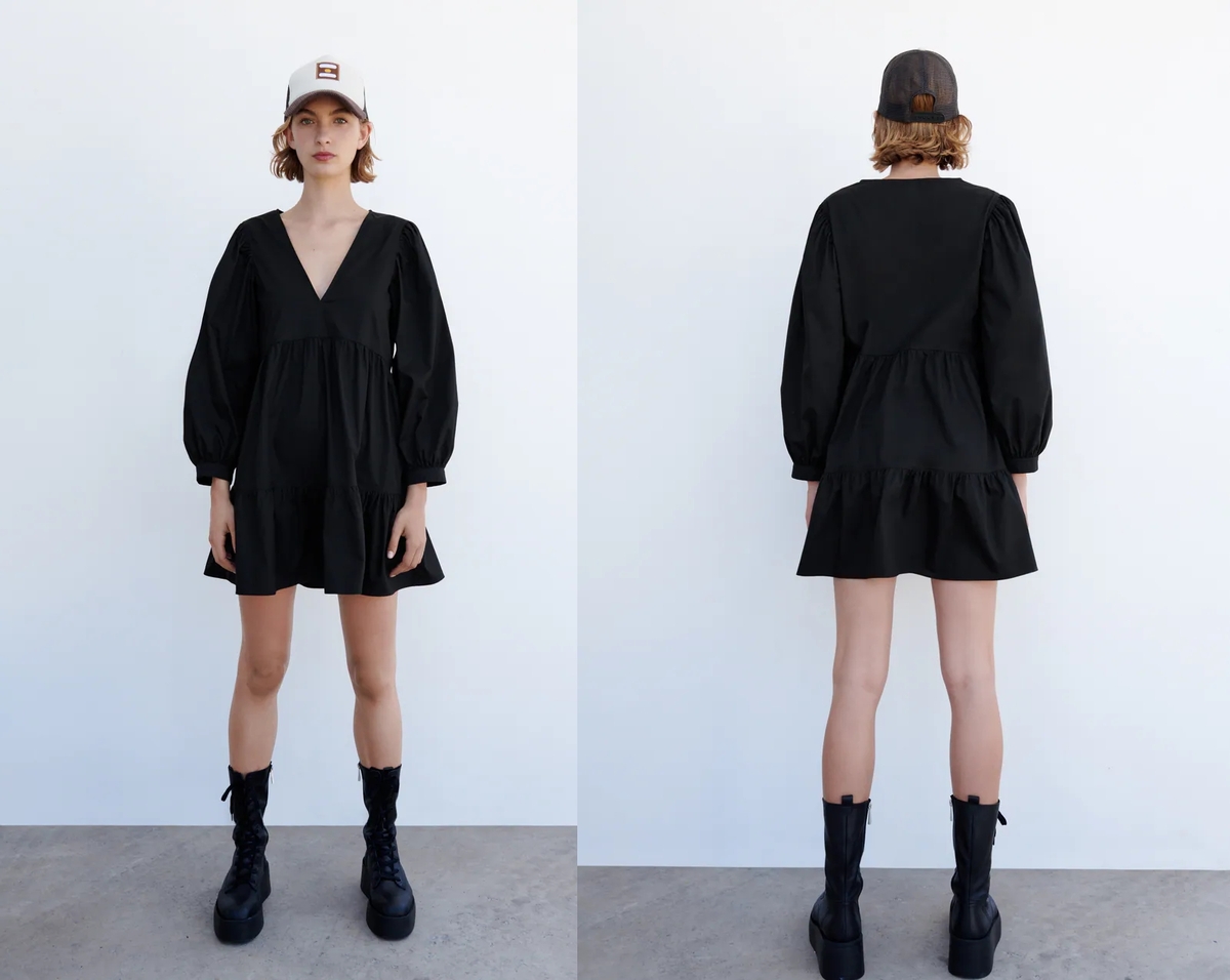 Si lo tuyo son los vestidos, puedes adquirir este vestido popelín de paneles de Zara. Ahora con un descuento del 35% que lo deja en solo 15,99€. Ese es el precio para todas sus tallas y para este tono negro.