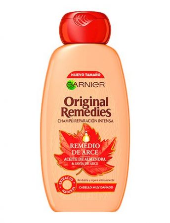 Garnier de arce es el remedio más auténtico de reparación para el pelo que permanece muy dañado. Su receta contiene dos ingredientes: la savia de Arce (propiedades reparadoras y cicatrizantes) y el aceite de almendra (nutritivo).