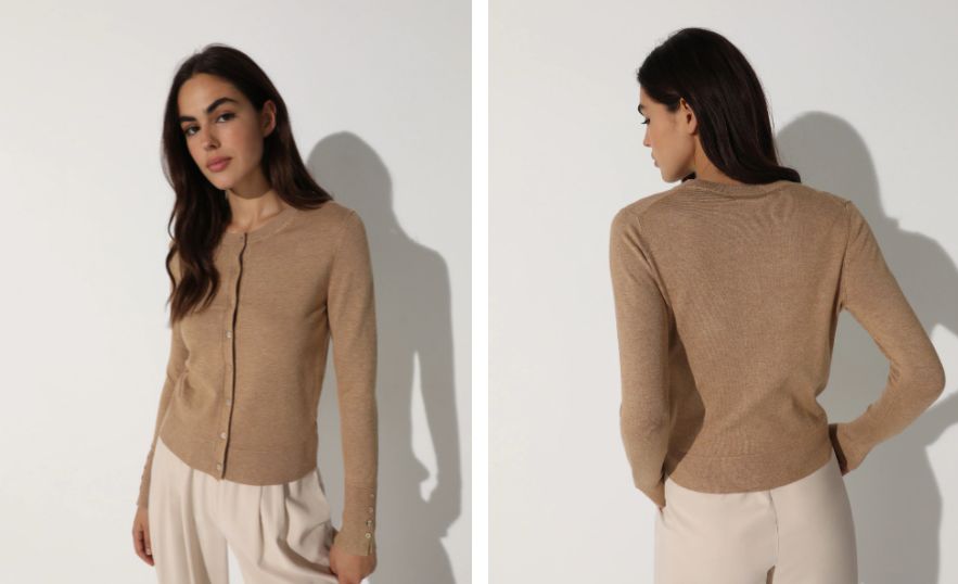 Pasamos al punto con cárdigans y chaquetas, comenzando con la opción más económica tras el 30% de descuento de El Corte Inglés. Se trata de esta chaqueta de mujer boba básica con botones ideal para ir a la moda otoñal a un precio bajísimo, concretamente 12,59 euros. Se vende en colores gris, negro, verde, lila y camel. Está hecha un 70% en viscosa y un 30% en nailon.