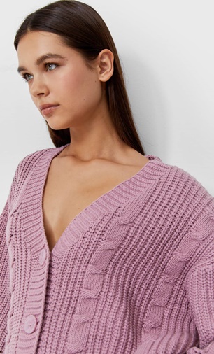 4El versátil cárdigan lila de Stradivarius con escote pico y manga larga