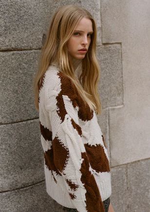 Fácil de portar, sin importar mucho la ocasión, para llevarlo a tu oficina o en una tarde en un compartir con tus amigos. Este Jersey hará lucir tu combinación y resaltara tu elegancia. Destaca tu etilo jovial con esta prenda. Viene en color crudo y su estampado en marrón. Su coste Mango 49.99 euros.