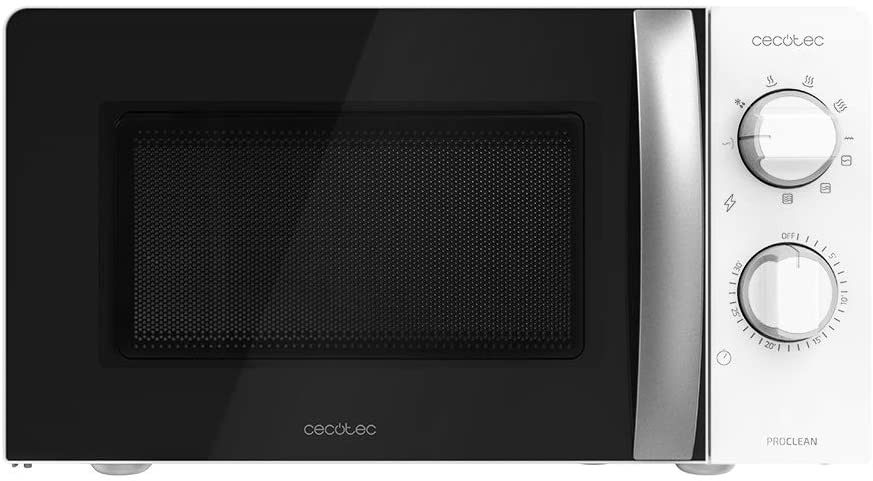 Según la OCU, uno de los mejores microondas baratos es el Cecotec Proclean 2010-0158. Esta firma española de origen valenciano ha sido la mejor valorada por su precio entre los 49 y 53€, su potencia de 1385W de potencia eléctrica y 700W de salida.