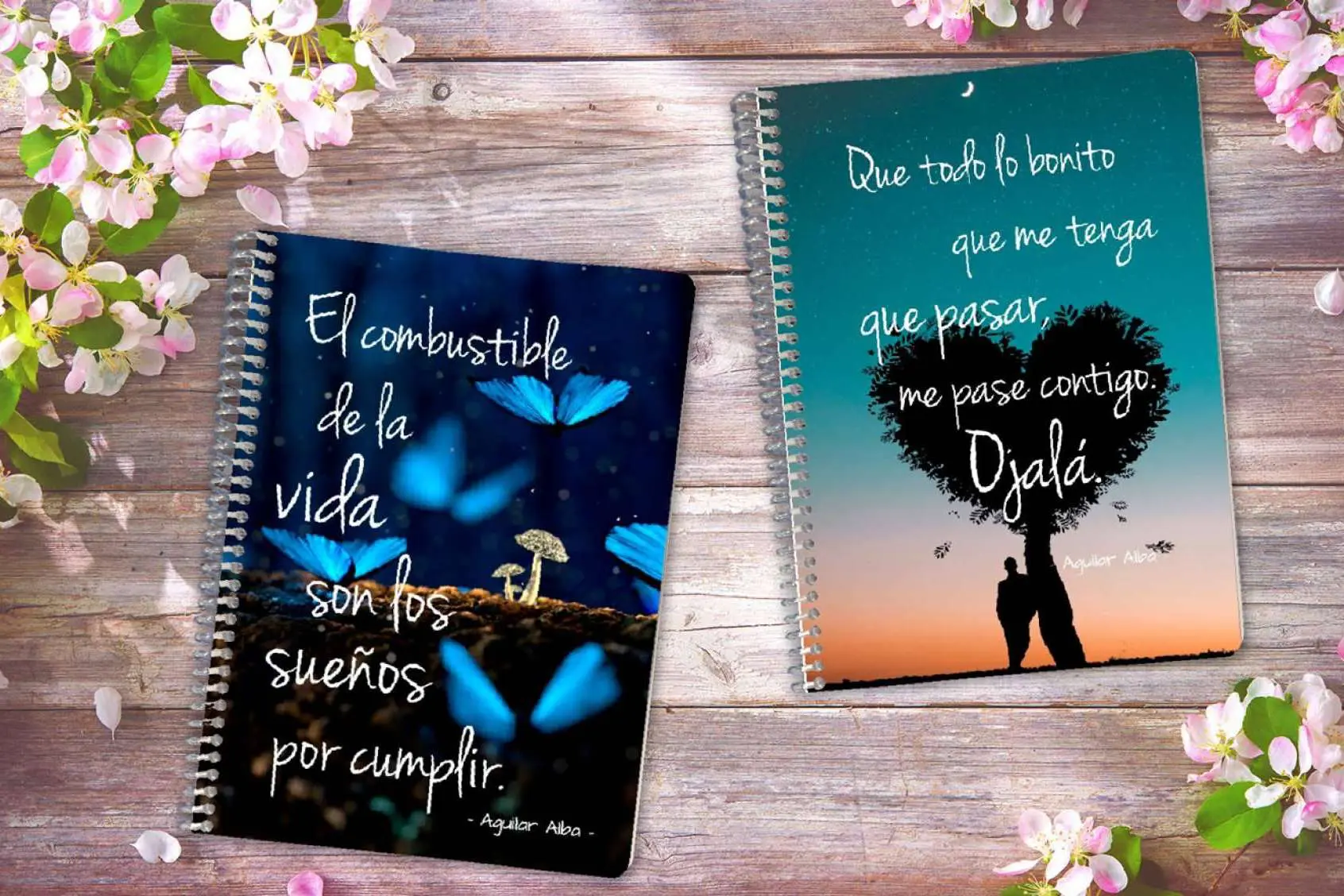Para los enamorados que deseen obsequiar una agenda a su pareja, la titulada “Ojalá” será una tierna manifestación de los más sublimes sentimientos, al proponer en la portada la frase: “Ojalá que todo lo bonito que me tenga que pasar, me pase contigo”, acompañada del diseño de Aguilar Alba. “Mi 2022 viene para que yo me coma el mundo, y pienso empezar por ti”; “El amor no tiene género” y “No rendirse”, son títulos que lucirán fabulosos en el día a día de los usuarios de las agendas.