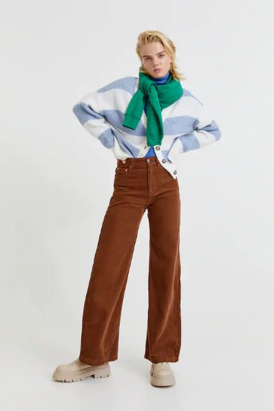 Cualquier prenda de pana, reafirma tu elegancia y confort cuando la portas y el Pantalón wide leg pana color, no es la excepción. En diseño de tiro alto, trabillas en su cintura, con cinco bolsillos y cierre de cremallera y botón.