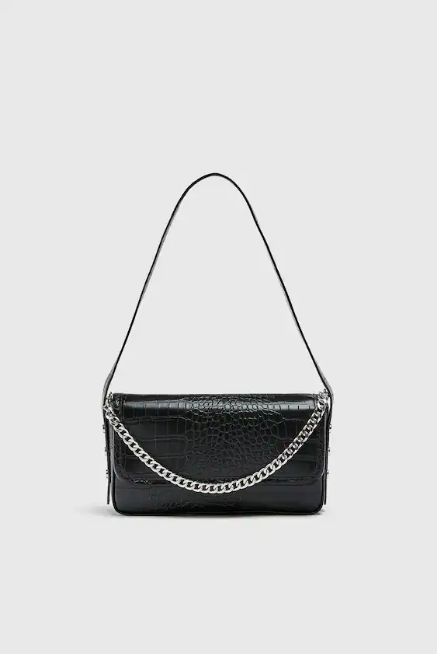 No puede faltar en ninguna época del año un bolso o una cartera y Pull&Bear, en cada una de su tiendas tiene, el Bolso de hombro detalle cadena. Con efecto coco, cierra con solapa imantada y asa de hombro.