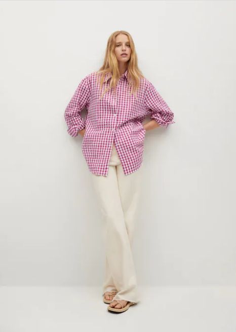 La camisa oversize cuadros que tienen las tiendas Mango, son una prenda de altísima calidad, destacara tu elegancia en el lugar que te encuentres. Tejido de algodón con textura, cuello clásico con corte recto, bajo asimétrico y cierra con botones en su parte delantera.
