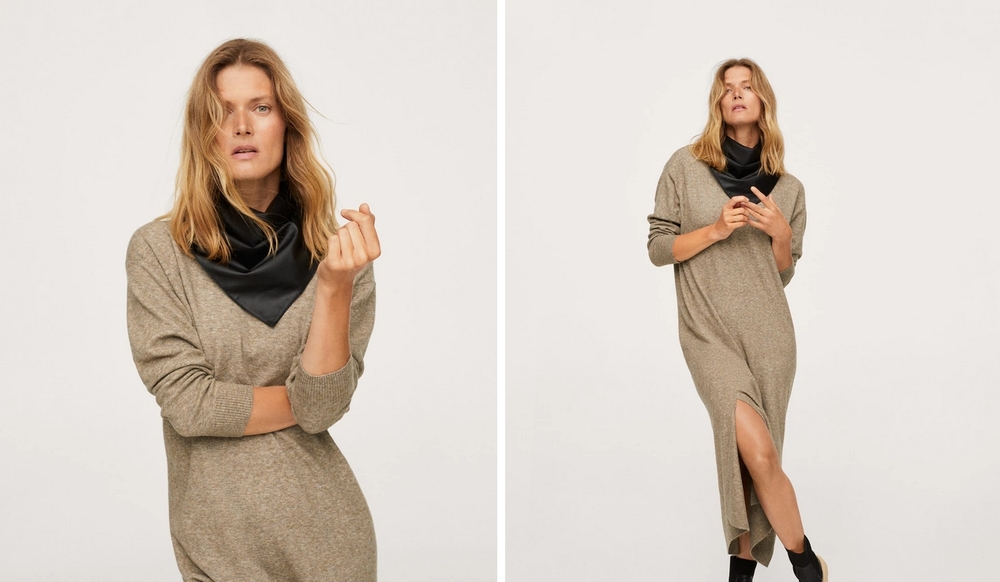 Por 29,99€ también tienes este otro vestido de punto con aberturas de Mango. Disponible en varias tallas y en dos acabados diferentes para elegir. crudo y marrón medio como el de la imagen.