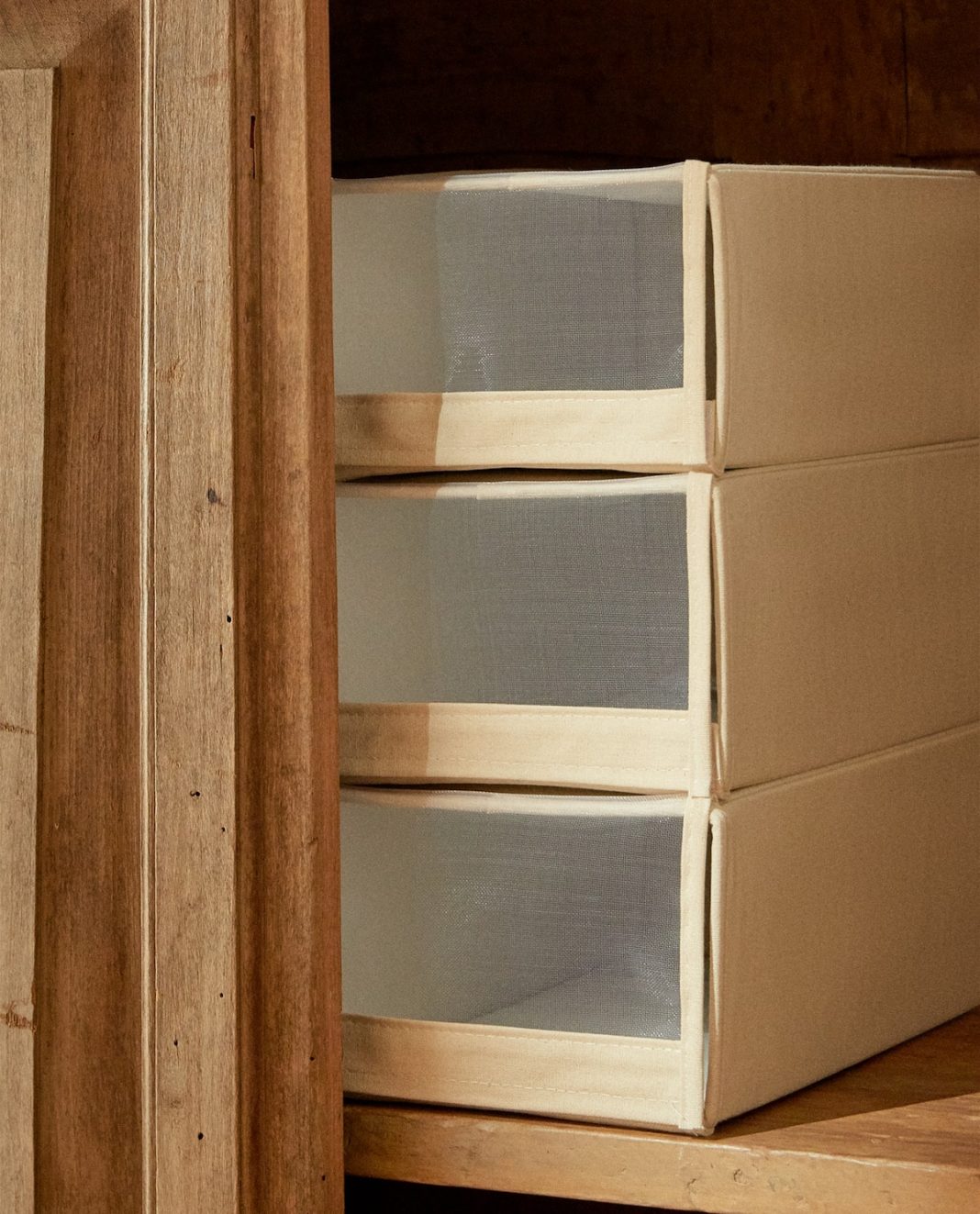 Llega la navidad y debemos ordenar los cuartos y siempre tenemos algunos zapatos regados en la habitación. Para eso Las tiendas Zara Home tienen la Caja plegable algodón zapatos. Totalmente elaborada en algodón para no estropear el cuero de tus zapatos y de color natural.