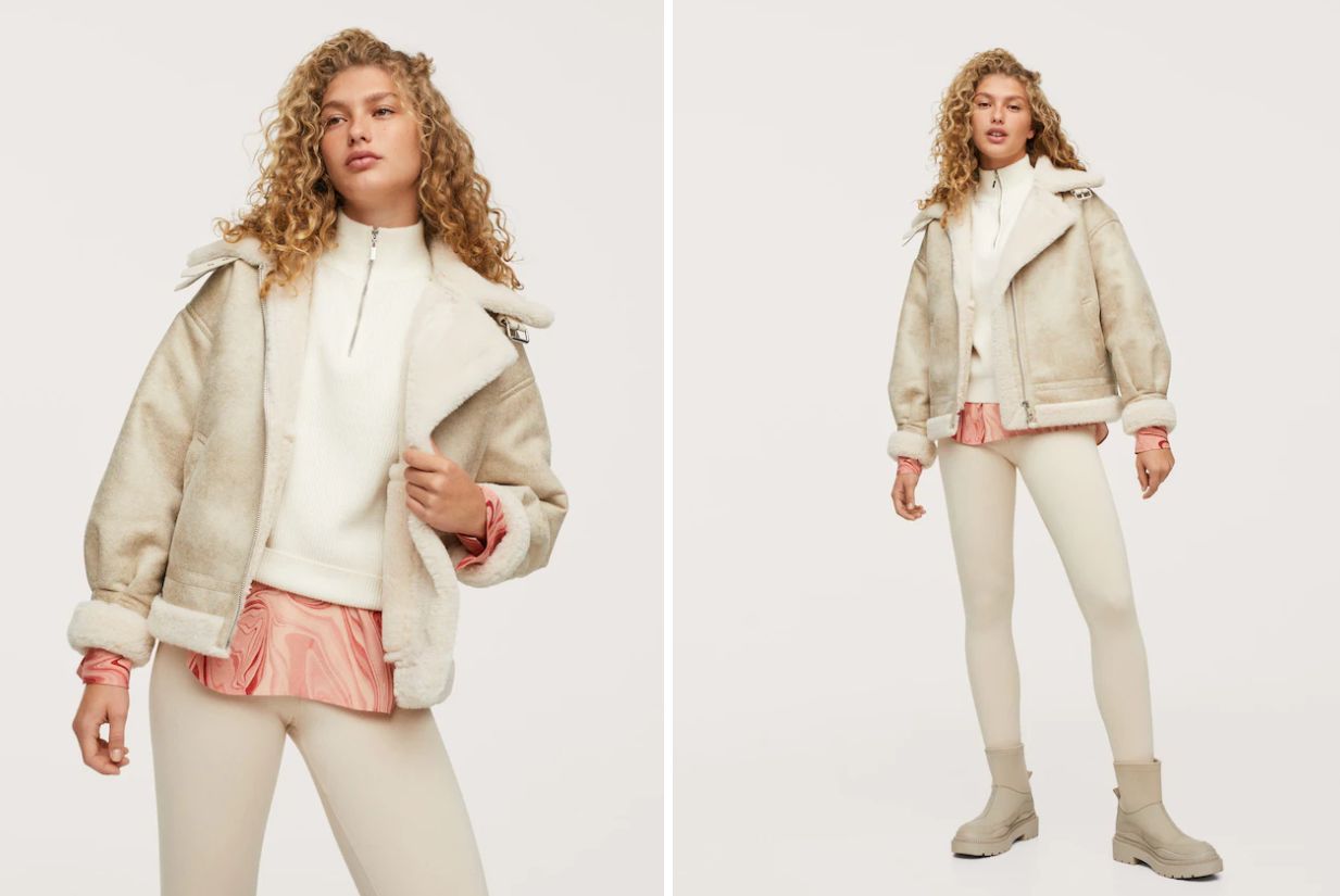 Tiene un diseño oversize y corto, con cuello de solapa y cierre de cremallera. Su precio en Mango es de 89,99 euros.