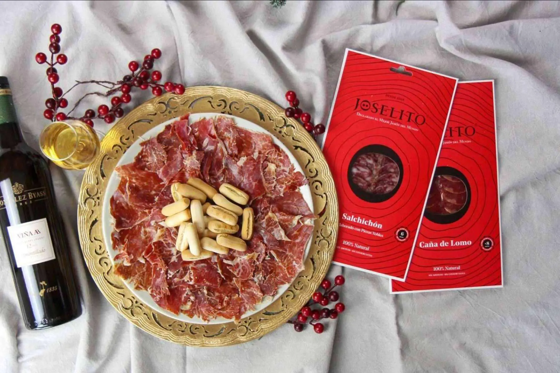 También hay muchas opciones para los amantes del cerdo como el Jamón Joselito 75% que contiene 80 gramos de jamón ibérico de bellota, 75% de la raza ibérica Joselito. Además, está cortado manualmente a cuchillo y su sabor único hace que sea catalogado como uno de los mejores jamones del mundo. La Coppa Joselito, un ibérico no tan conocido, tiene similitudes con el lomo pero su sabor y textura son mucho más delicados.