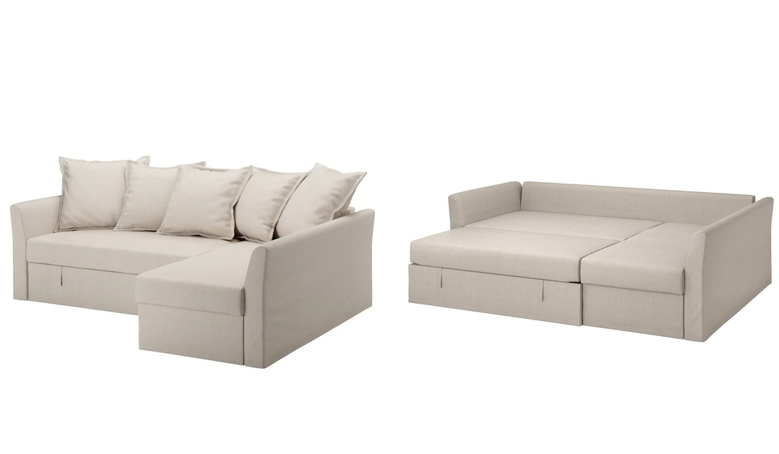 Por último, también puedes comprar ese sofá-cama con chaiselongue de Ikea. En este caso de la serie HOLMSUND. Su precio es 699€, con un diseño compacto y cómodo que podrás elegir en colores como el beige, gris claro, azul claro y gris claro.