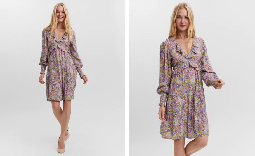Aunque es otoño, sigue siendo momento para lucir vestidos luminosos y con aire primaveral, como este de Vero moda en manga larga y que tiene un descuento del 16%. Es un precioso vestido en azul índigo, con frunce y fabricado con fibras recicladas, por lo que está marcado en la web de El Corte Inglés como prenda sostenible. Su precio es de 49,99 euros.
