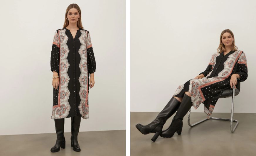 Vamos con otro tipo de vestido, largo y fluido, muy para esta época, y de la marca Couchel. Se trata de una prenda midi de lo más confortable, con manga larga francesa y cuello de pico. Tiene cierre de botones oculto con tapeta y aberturas en el bajo. Está fabricado 100% en viscosa. Con el descuento de El Corte Inglés del 30% su precio se queda en 55,99 euros. En este enlace lo puedes comprar.