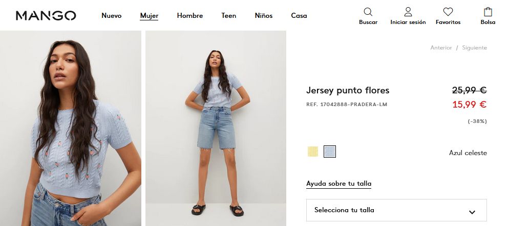 Es uno de los jerseys muy solicitados por las mujeres, dado que son fabricados en tejidos con algodón. Además, cuenta con un diseño entallado y cuello redondo, y son de manga corta. Inclusive, tienen bordados de flores y unas terminaciones de canalé, por lo que son perfectos para usar en la temporada de otoño. Si desean comprar este hermoso jersey solo deben entrar a Mango por un precio de 15,99 €.