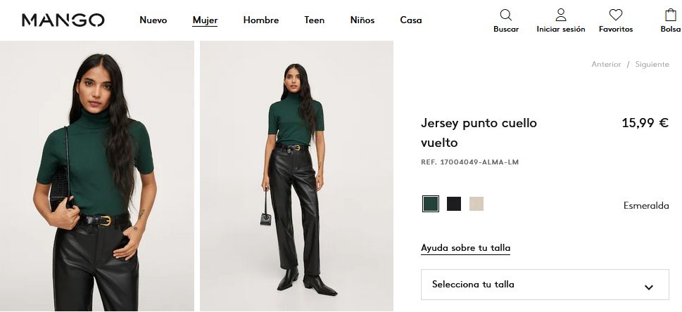 Es un hermoso jersey de punto que cuenta con un tejido de punto fino. Además, cuenta con un increíble diseño entallado y un cuello vuelto. Inclusive, son de mangas cortas y tiene terminaciones de canalé por lo que es perfecto de usar en la temporada de otoño. Para que puedan comprar este jersey solo deben entrar a Mango por un precio de 15,99 €.