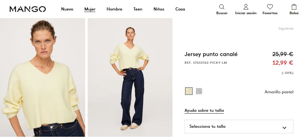Es un jersey que cuenta con un tejido de punto de canalé y elástico. Además, estos son de diseño recto y cuello de pico. Inclusive, tiene unas mangas largas para generar ese toque que todos buscan. Y, su costura en la parte del hombro es caída, por lo que genera ese toque único dentro de su estilo. Entonces, si desean comprar esta prenda solo deben entrar a Mango por un precio de 12,99 €.